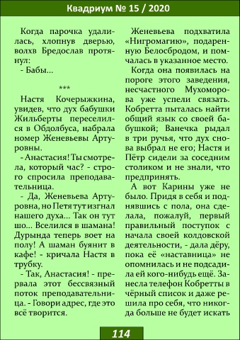 лась, хлопнув дверью, «Нигромагию», подарен-
